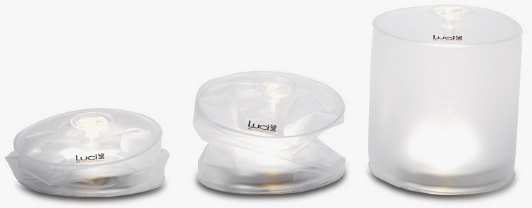 Just like the rest of the products in the line, the Luci EMRG is inflatable, allowing it to pack down flat for easy transport. Seriously, you can carry a few of these to your next camping trip, instead of a regular flashlight, and have decent free illumination for your whole stay. A solar PV is integrated at the bottom (so you charge it with the bottom facing up), which it uses to harvest natural sunlight and incandescent light, generating energy that it feeds to the onboard battery. It uses ten LEDs to provide the focused beam of light, which the battery can power for around seven hours on a full charge (lowest setting, though). Everything is housed inside a waterproof PVC shell, so the flashlight can be safely used in the rain, in salt water, and even in the swimming pool out back.